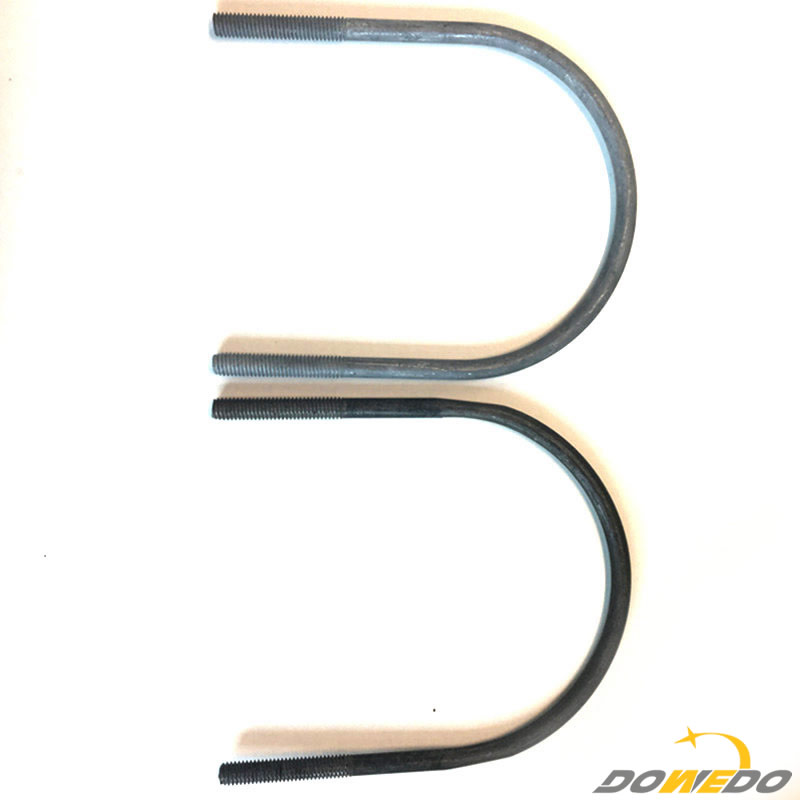 u型螺栓是u型螺栓,两个螺纹臂从弯曲的底座突出。圆u型螺栓通常用于将管道或钢圆棒固定在木材或钢柱上。它们也被用来悬挂机械装置中的锻铁管。U型螺栓,卡车用U型螺栓